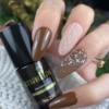 Głęboki, czekoladowy brąz o satynowym wykończeniu. Ten lakier hybrydowy jest synonimem elegancji i wyrafinowania. Idealny dla kobiet, które lubią klasykę w luksusowym wydaniu. Pięknie podkreśla ciepły odcień skóry i doskonale wygląda z biżuterią w złocie. To odcień idealny na chłodniejsze dni, który dodaje dłoniom stylu, harmonii i przytulnego charakteru. Zmysłowy i pełen klasy – idealny na każdą okazję.